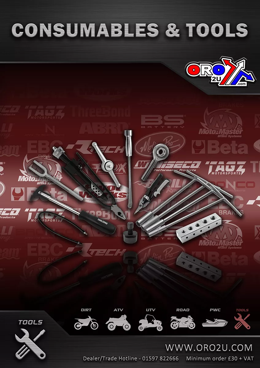 ORO2U ATV Catalogue - ATV Section A - Race Box Tools Section Tools, Tyre Levers, Nuts and bolts, Washers, cleaning, spray paints, oils, fuel containers, tie downs, bike stands, security.